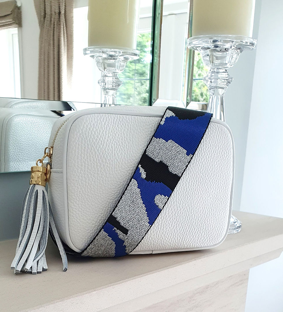 White, Black and Silver Camo Bag Strap